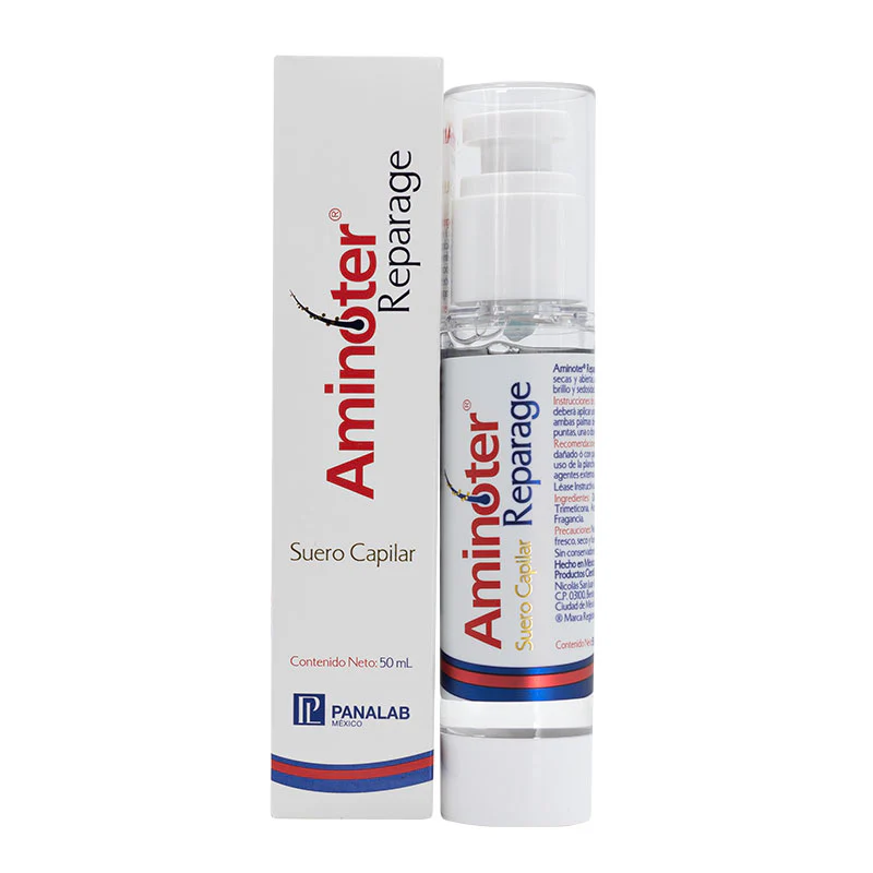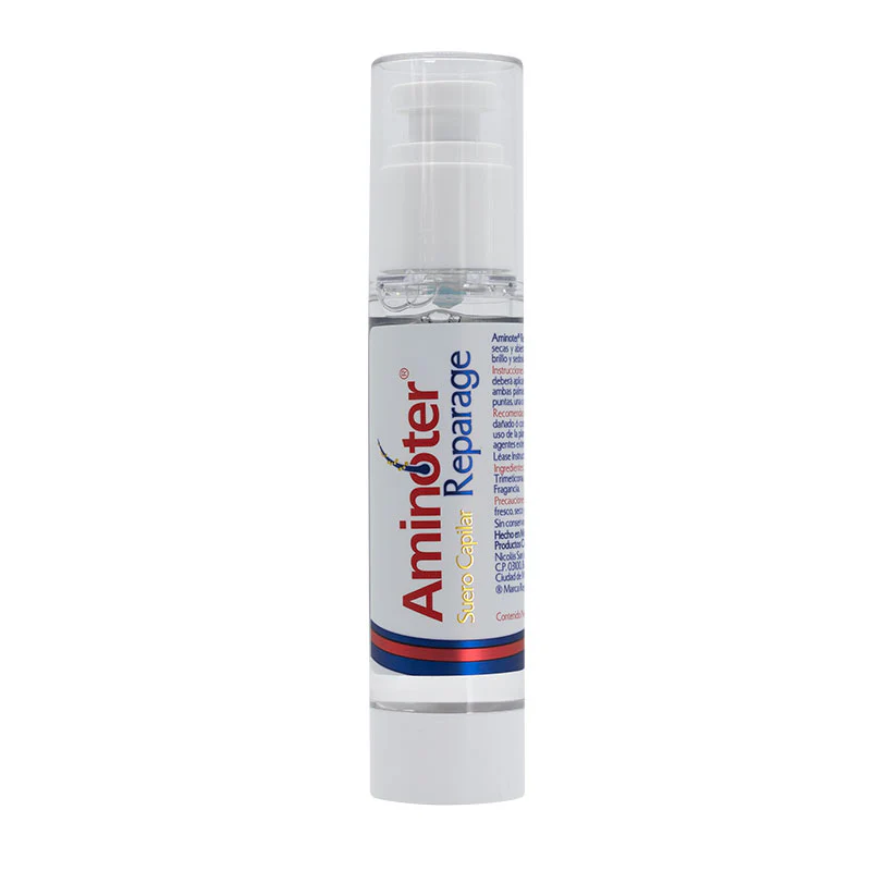 ¡Repara tu cabello con Aminoter Reparage Suero Capilar 50 ml! Este sérum, ideal para cabello seco, dañado o con puntas abiertas por plancha, secadora, tintes, cloro o sol, hidrata y fortalece gracias a su fórmula con vitamina E, aceite de jojoba y complejo Reparage Silk. Reduce el frizz, previene la rotura, protege contra el calor y aporta brillo y sedosidad desde la primera aplicación (+90% satisfacción*). Hipoalergénico, sin sulfatos ni parabenos, aplica una pequeña cantidad en medios y puntas, seco o húmedo, 1-2 veces al día, sin enjuague. ¡Perfecto para un cabello suave y radiante!