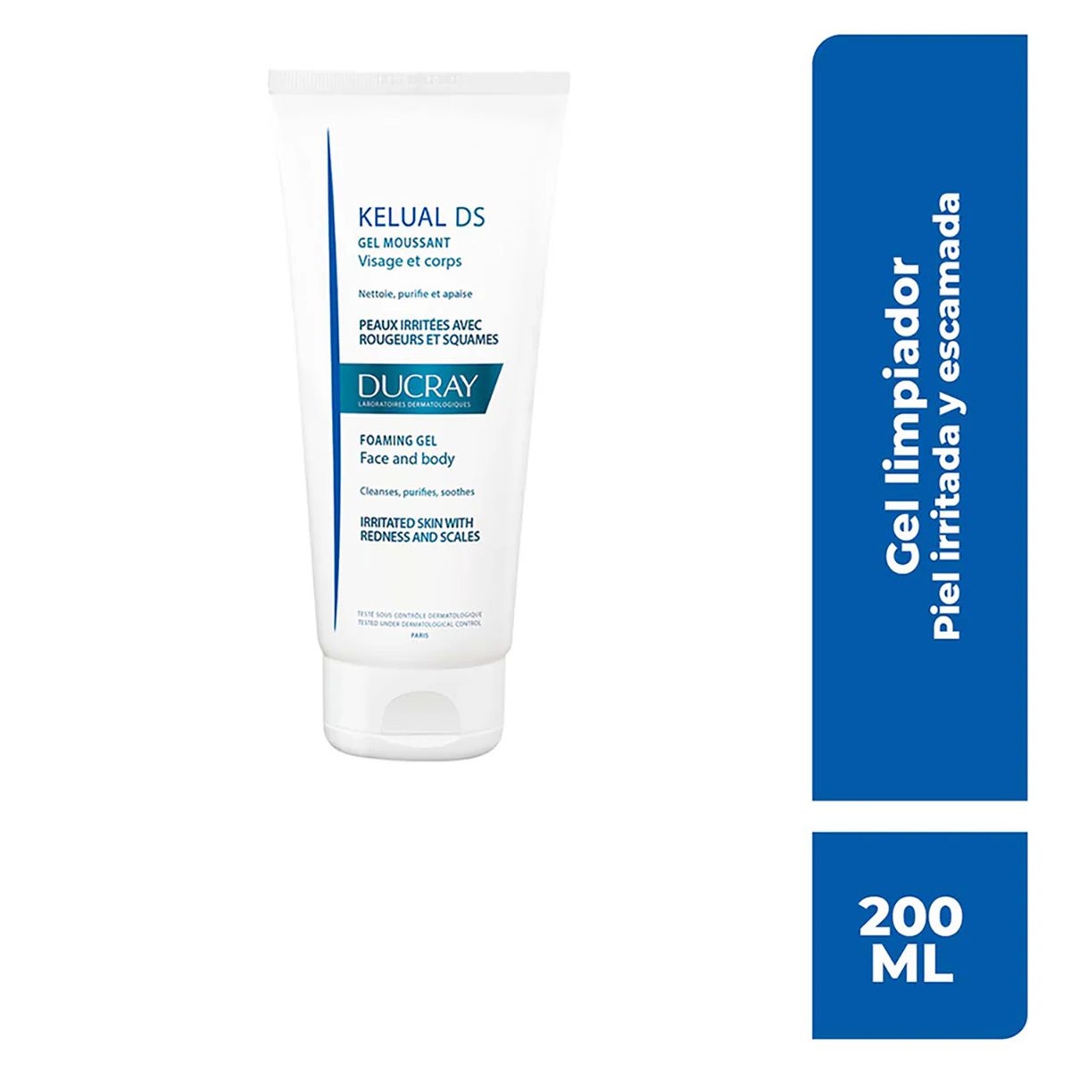 ¡Limpia y calma tu piel con Ducray Kelual DS Gel Limpiador 200 ml! Ideal para pieles sensibles con rojeces, descamación o dermatitis seborreica, este gel espumoso sin jabón purifica suavemente rostro y cuerpo. Con keluamida, piroctona olamina, gluconato de zinc y glicerina, elimina escamas (-86%), reduce irritaciones y controla la proliferación de Malassezia, aliviando picores desde el primer uso (+95% satisfacción). Hipoalergénico, sin perfume ni parabenos, aplica 1-2 veces al día en piel húmeda, haz espuma, deja actuar unos minutos y enjuaga. ¡Perfecto para una piel suave, limpia y radiante!