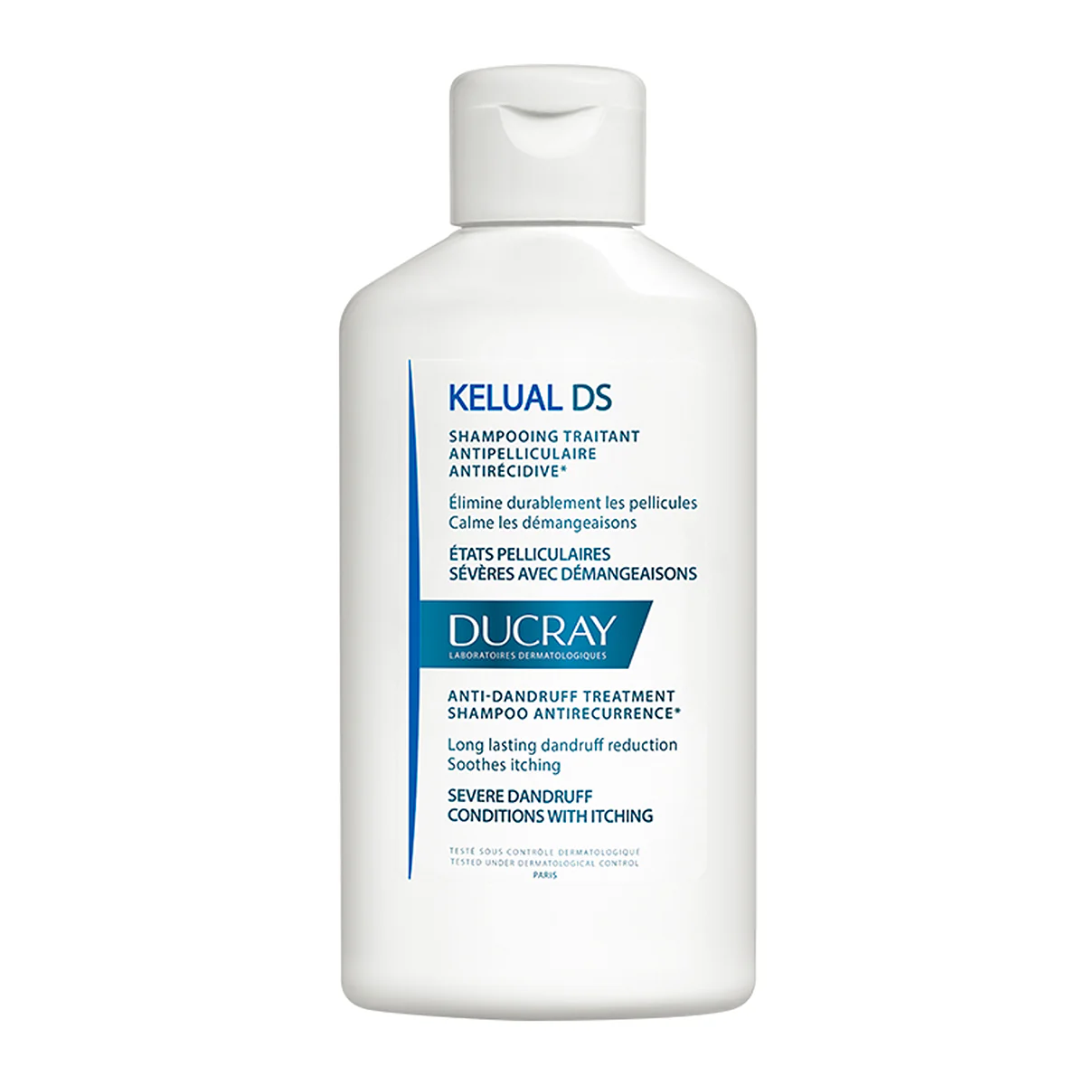 ¡Alivia tu cuero cabelludo con Ducray Kelual DS Shampoo 100 ml! Ideal para cueros cabelludos con caspa severa o dermatitis seborreica, este champú elimina escamas (-89%), calma la comezón (-80%) y reduce el enrojecimiento con su fórmula de ciclopiroxolamina, piritiona de zinc y ácido glicirretínico. Su espuma cremosa limpia suavemente, cuida el cabello teñido y previene recidivas con uso de mantenimiento (1 vez por semana). Hipoalergénico, sin sulfatos ni parabenos, aplica 3 veces por semana durante 2 semanas en cabello húmedo, deja actuar 3 minutos y enjuaga. ¡Perfecto para un cuero cabelludo saludable y confortable!