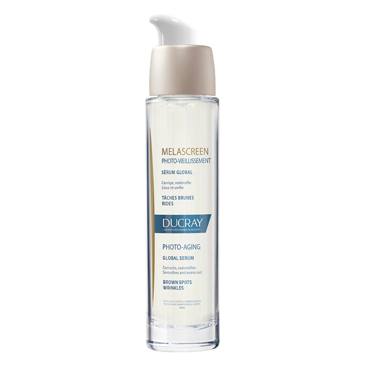¡Ilumina y rejuvenece tu piel con Ducray Melascreen Sérum Global Fotoenvejecimiento 30 ml! Ideal para todo tipo de piel, este sérum antiedad combate manchas oscuras (-42%), arrugas (-83%) y pérdida de firmeza (+74%*) gracias a su fórmula con ácido azelaico, ácido glicólico, ácido hialurónico y vitamina E. Hidrata, alisa y redensifica, dejando la piel luminosa y uniforme. Hipoalergénico, aplica mañana y/o noche en rostro, cuello y escote limpios, evitando el contorno de ojos. Usa protector solar diurno. ¡Perfecto para un cutis radiante!