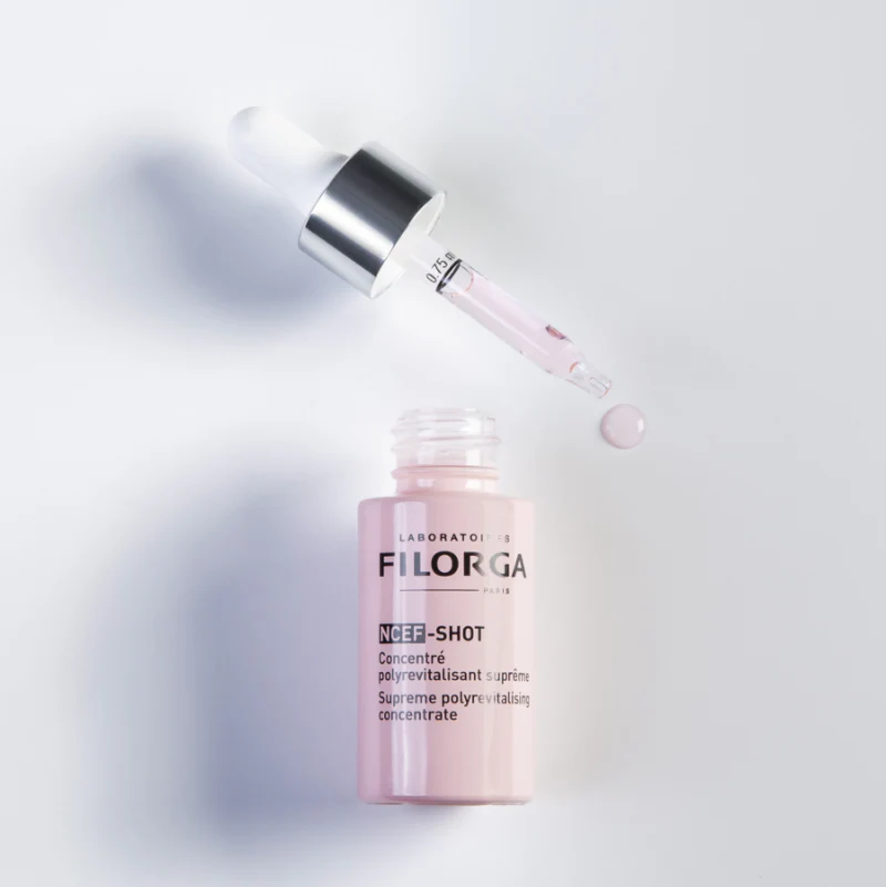 ¡Revitaliza tu piel en 10 días con Filorga NCEF-Shot Sérum 15 ml! Este concentrado antiedad, ideal para todo tipo de piel, combate arrugas, falta de firmeza y pérdida de luminosidad. Su fórmula ultraconcentrada con NCEF (50 ingredientes: vitaminas, aminoácidos, minerales, antioxidantes) y exopolisacáridos activa la regeneración celular, ofreciendo una dosis equivalente a una mesoinyección diaria. Hidrata, reafirma y aporta un brillo radiante, perfecto para pieles cansadas o estresadas. Hipoalergénico, aplica 2-3 gotas mañana y noche en rostro, cuello y escote limpios antes de tu crema o sérum. ¡Tu aliado para una piel rejuvenecida y luminosa!