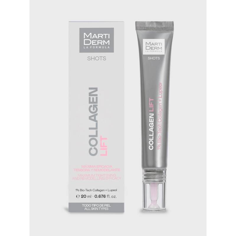 MartiDerm Shot Collagen Lift es una fórmula líquida avanzada que combina péptidos bioactivos de colágeno con ácido hialurónico, vitaminas y minerales para mejorar la firmeza, elasticidad e hidratación de la piel desde el interior. Ideal como complemento a tratamientos tópicos antiedad, este shot diario ayuda a reducir los signos visibles del envejecimiento y aporta luminosidad desde las primeras semanas de uso.