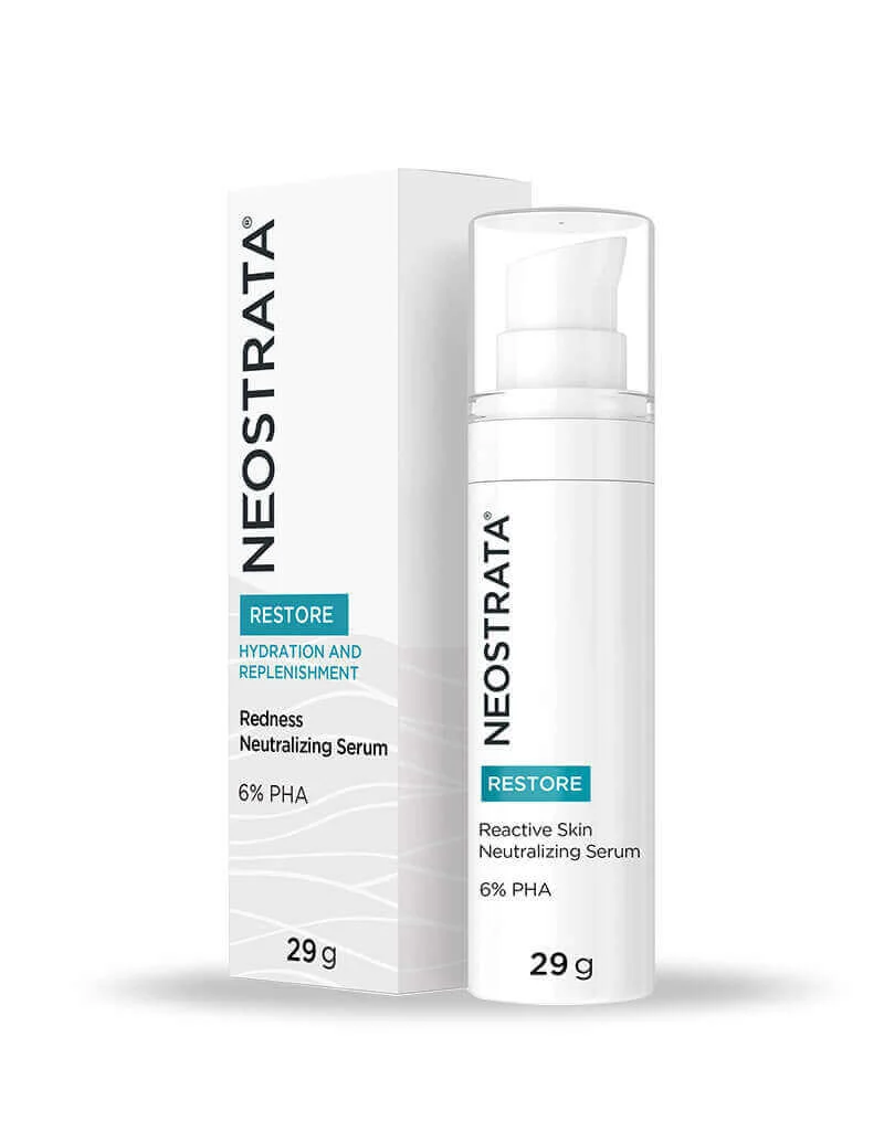¡Calma y revitaliza tu piel con Neostrata Restore Redness Neutralizing Serum 29 g! Ideal para pieles sensibles, reactivas o con rojeces, este sérum ligero y refrescante con BioCalm Complex® (6% PHA: gluconolactona y ácido lactobiónico) hidrata, fortalece la barrera cutánea y reduce irritaciones. Enriquecido con vitamina E y extracto de té blanco, minimiza enrojecimientos, unifica el tono y protege contra el estrés ambiental. Hipoalergénico, sin fragancia ni aceites, aplica 1-2 pulsaciones en rostro limpio, día y noche. ¡Perfecto para una piel suave, calmada y radiante!