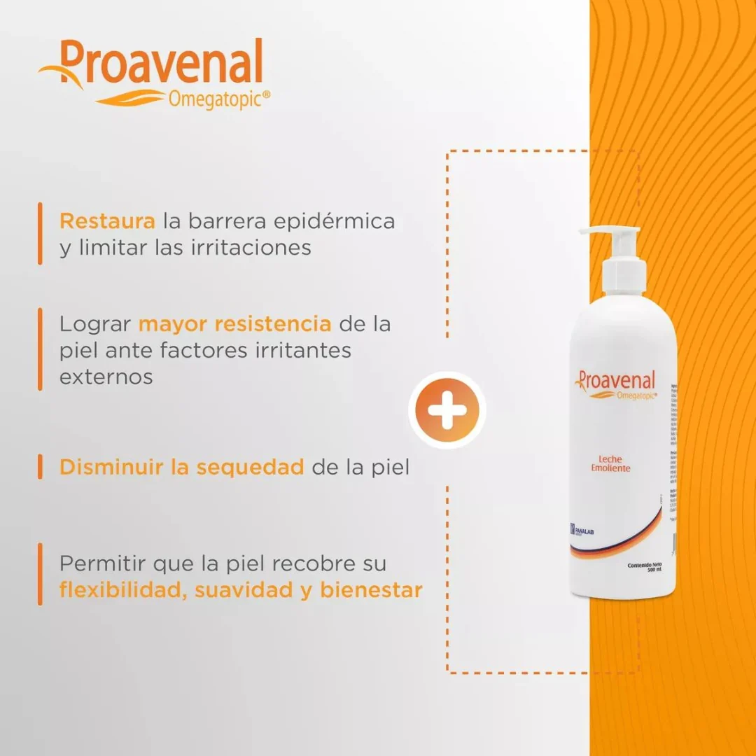 ¡Cuida tu piel con Panalab Proavenal Omegatopic Leche Emoliente 500 ml! Ideal para pieles sensibles, atópicas o muy secas de bebés, niños y adultos, esta leche hidratante alivia picores, reduce irritaciones y restaura la flexibilidad gracias a su fórmula con avena sativa ultramicronizada, ácidos grasos omega 6 y vitamina B3. Su textura ligera, sin perfume, se absorbe rápido, reforzando la barrera cutánea (+95% suavidad*). Hipoalergénica, aplica 2 veces al día en piel limpia y seca, masajeando suavemente, especialmente en zonas secas. ¡Perfecta para una piel suave y confortable!